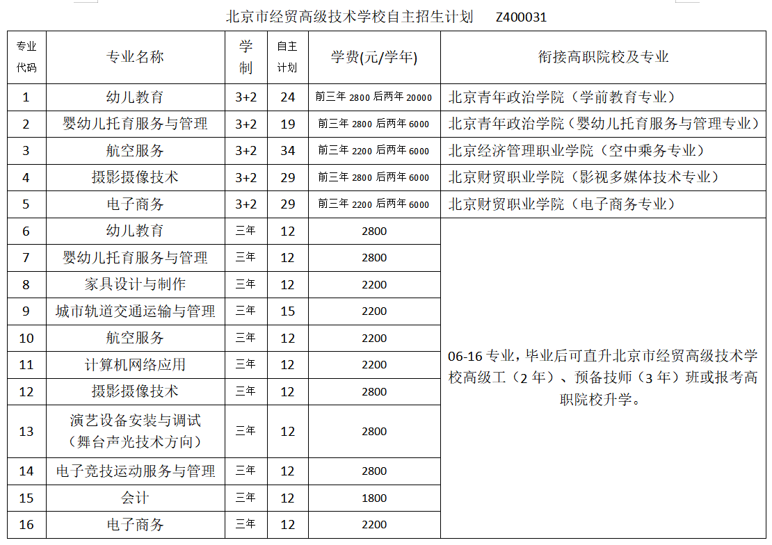 6、正式录取:专业能力测试合格考生及家长请于5月11日至15日9:00-15:00期间,将“2025年北京市高级中等学校招生体格检查表”和“2025年中等职业教育自主招生报名表”交给我校为报考我校的依据。我校完整填写“2025年中等职业教育自主招生录取回执”,加盖公章后交给考生,作为录取凭证。