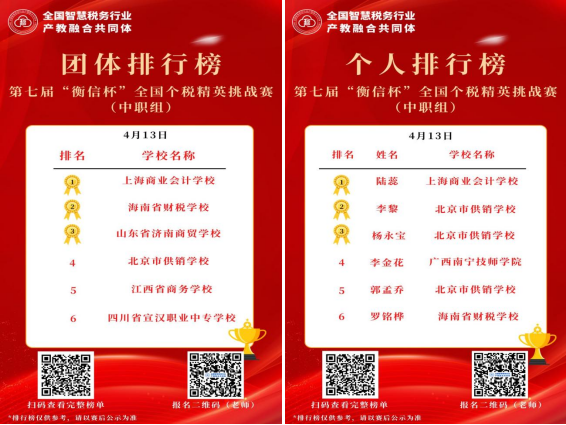 在刚刚落幕的第七届“衡信杯”全国个税精英挑战赛中,我校参赛团队凭借扎实的专业知识和出色的实战能力,从全国69所中职组参赛院校、4400余名选手中脱颖而出,我校整体全国排名第四,斩获大赛团体一等奖,个人全国前三名中我校独占两席,以亮眼成绩展现了学校会计专业教育的丰硕成果,彰显了新时代财会学子的卓越风采。