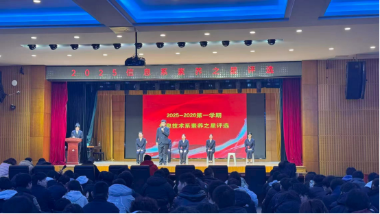 为深入贯彻国家关于中等职业教育“立德树人、德技并修”的育人要求,落实《中等职业学校学生素养提升行动计划》精神,我校信息技术系于2025年12月22日上午8:30在八号楼二层礼堂,成功举办本学期第二次“素养之星”评选活动。此次活动以素养为根基、以技术为本位,旨在通过树立先进典型,激发全体学生提升综合素养、锤炼专业技能,营造见贤思齐、奋发向上的系部文化。