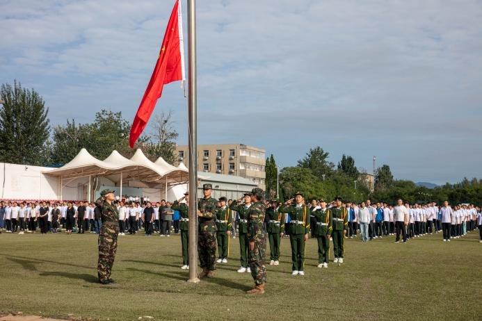 伴着国歌,鲜艳的五星红旗冉冉升起,全体师生面向国旗行注目礼,庄严肃立,齐唱国歌,以崭新的面貌、饱满的热情拉开了开学典礼的帷幕。